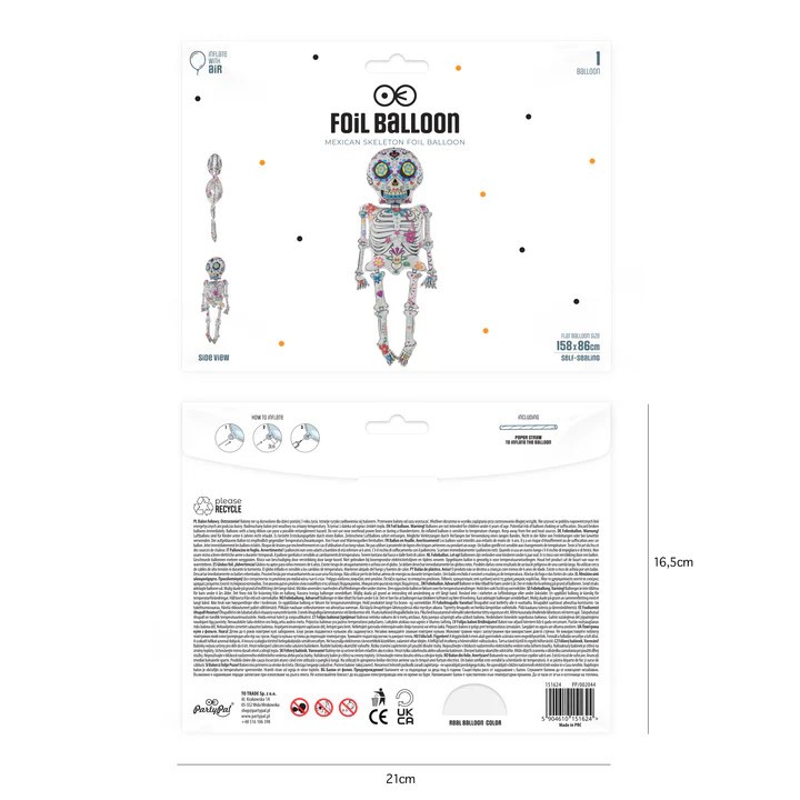 Balon foliowy "Szkielet Meksykański" o imponującej wysokości 158 cm to wyjątkowa dekoracja, która doda kolorowego uroku Twojej halloweenowej imprezie! Inspirowany meksykańskim świętem Día de los Muertos, ten balon przedstawia wesołego szkieleta ozdobionego bogatymi wzorami i żywymi kolorami. Idealny na imprezy tematyczne, Halloween, a także do sesji zdjęciowych. Ten efektowny balon z pewnością stanie się hitem każdej dekoracji!
