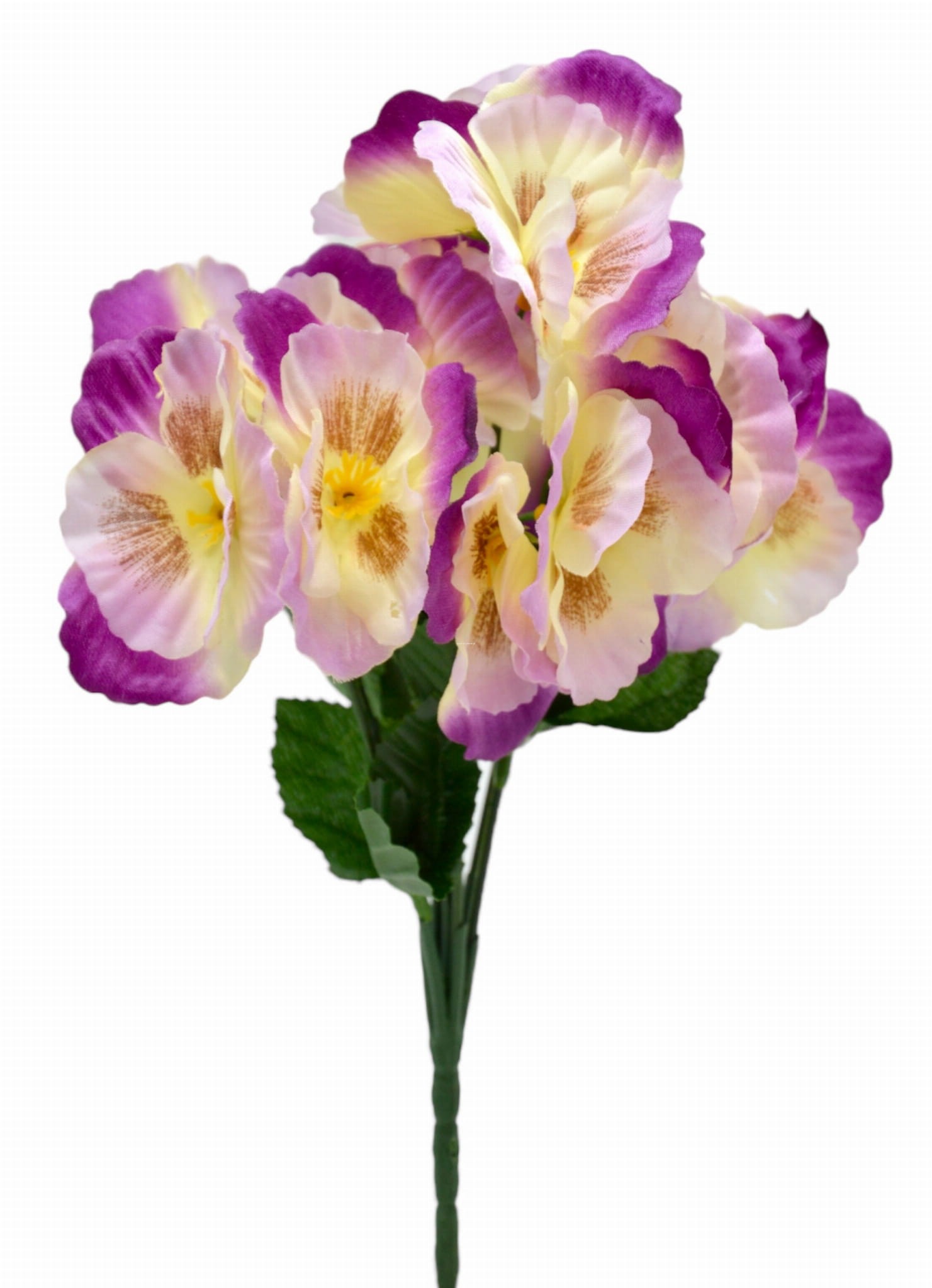Wysokiej jakości bukiet sztucznych bratków, które rozjaśnią i ożywią każdą przestrzeń. Realistyczny wygląd oraz jasny kremowo-fioletowy kolor kwiatów doda uroku i elegancji w domu, restauracji, sali weselnej oraz na wielu innych okazjach i uroczystościach.
