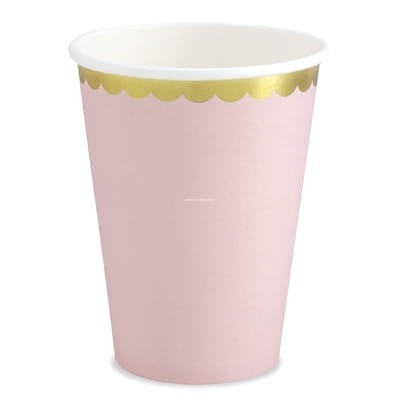 Papierowe jasnoróżowe kubeczki, ze złotymi metalizowanymi brzegami. Nięzbędny dodatek na każdą imprezę!