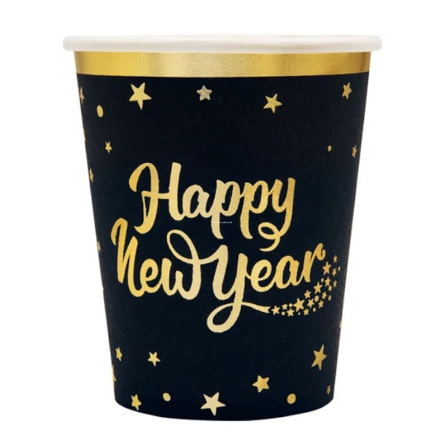 Kubeczki papierowe Happy New Year czarny 6szt