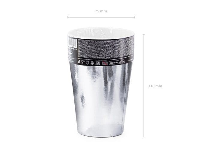 Kubeczki papierowe Srebrne 220 ml 6 szt