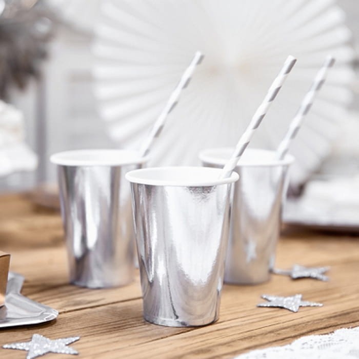 Srebrne metaliczne kubki papierowe są bardzo poręczne dzięki swojej małej wadze, z łatwością przetransportujesz je w każde miejsce. Przyjdą Ci z pomocą, jeśli organizujesz przyjęcie, urodziny, wieczór panieński lub spodziewasz się większej ilości przyjaciół. Wpasują się w każdą imprezę dzięki swojemu uniwersalnemu wyglądowi.