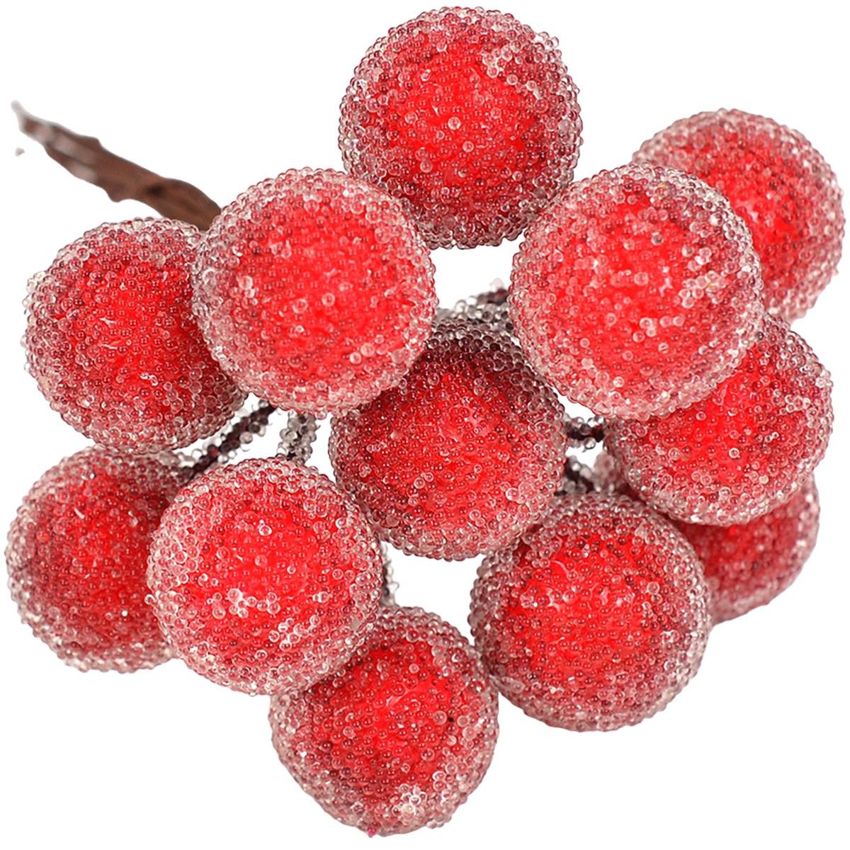 Kuleczki oszronione czerwone na druciku 6 szt
