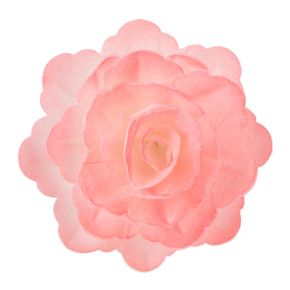 Róża Chińska różowa cieniowana kwiat duża 5,5cm ozdoba waflowa na tort 1 szt