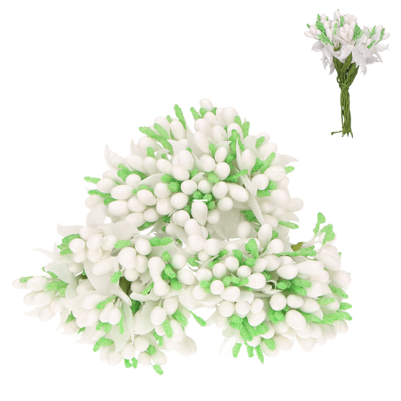 Ryżyk kaszka 12 drucików - Biało-Zielony Komunia Chrzest stroik