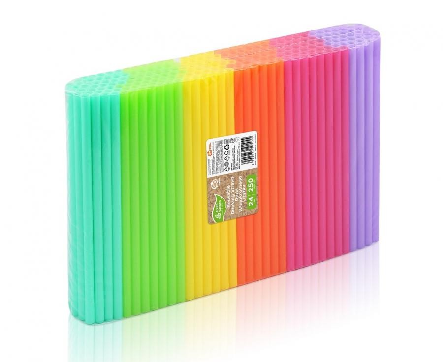 Słomki Rurki Plastikowe Wielokrotnego Użytku Shake Mix Kolorowe 250szt