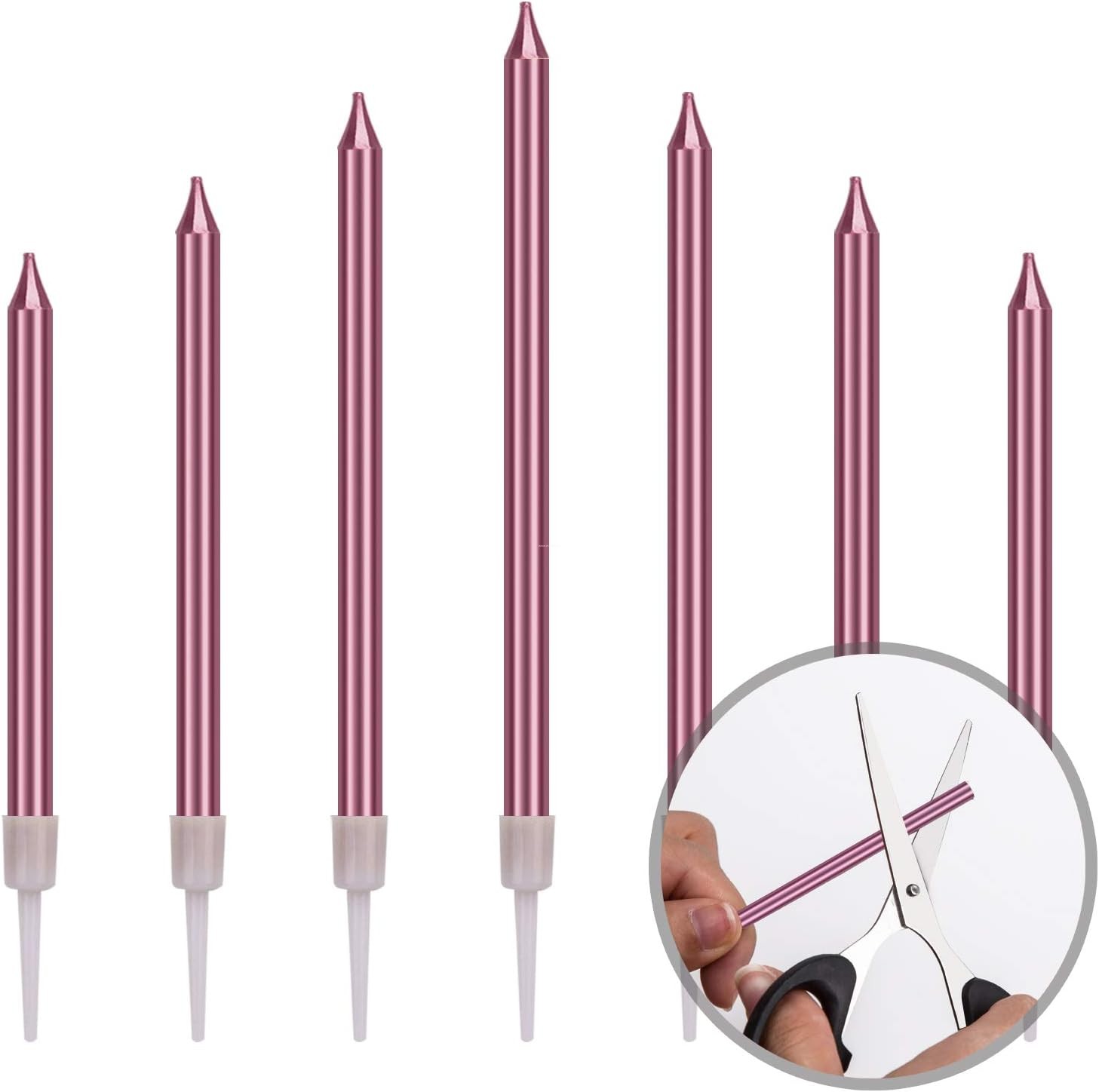Proste świeczki urodzinowe w kolorze różowym. Wspaniale sprawdzą się do udekorowania tortu urodzinowego.