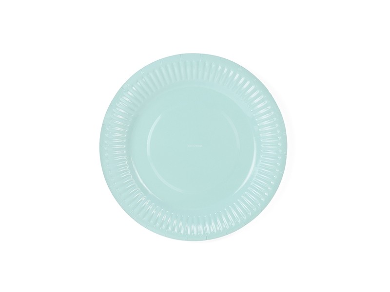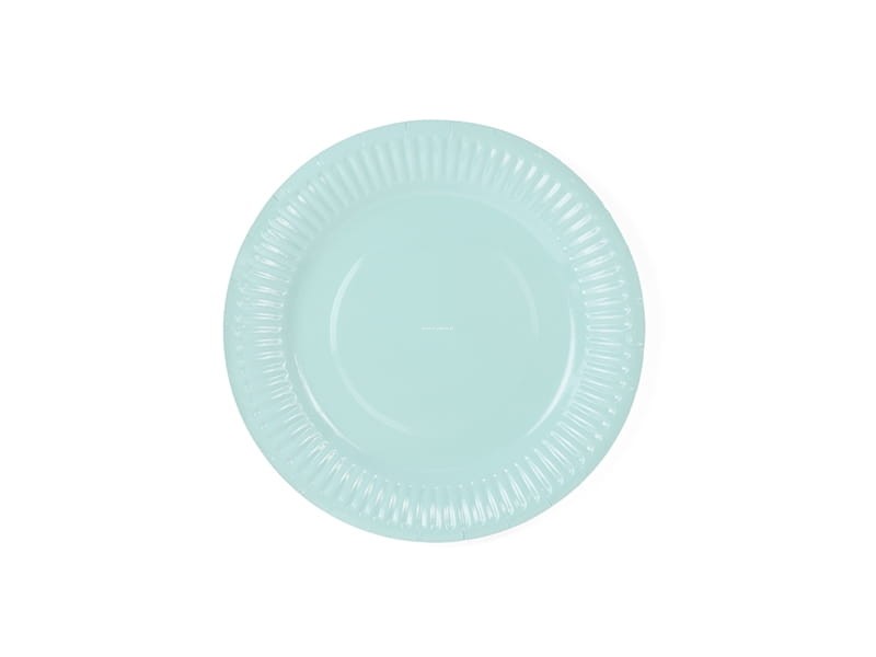Zestaw 6 talerzyków wykonanych z papieru w kolorze turkusowym. Przeznaczone do zimnych i ciepłych potraw.