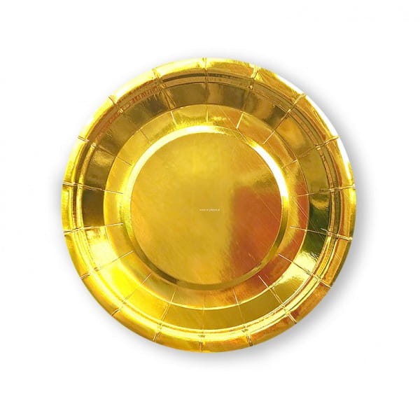 Papierowe talerzyki z wykonane z papieru w kolorze złotym. Średnica ok. 22,5 cm . Idealnie sprawdzą się na wszelkiego rodzaju przyjęcia.