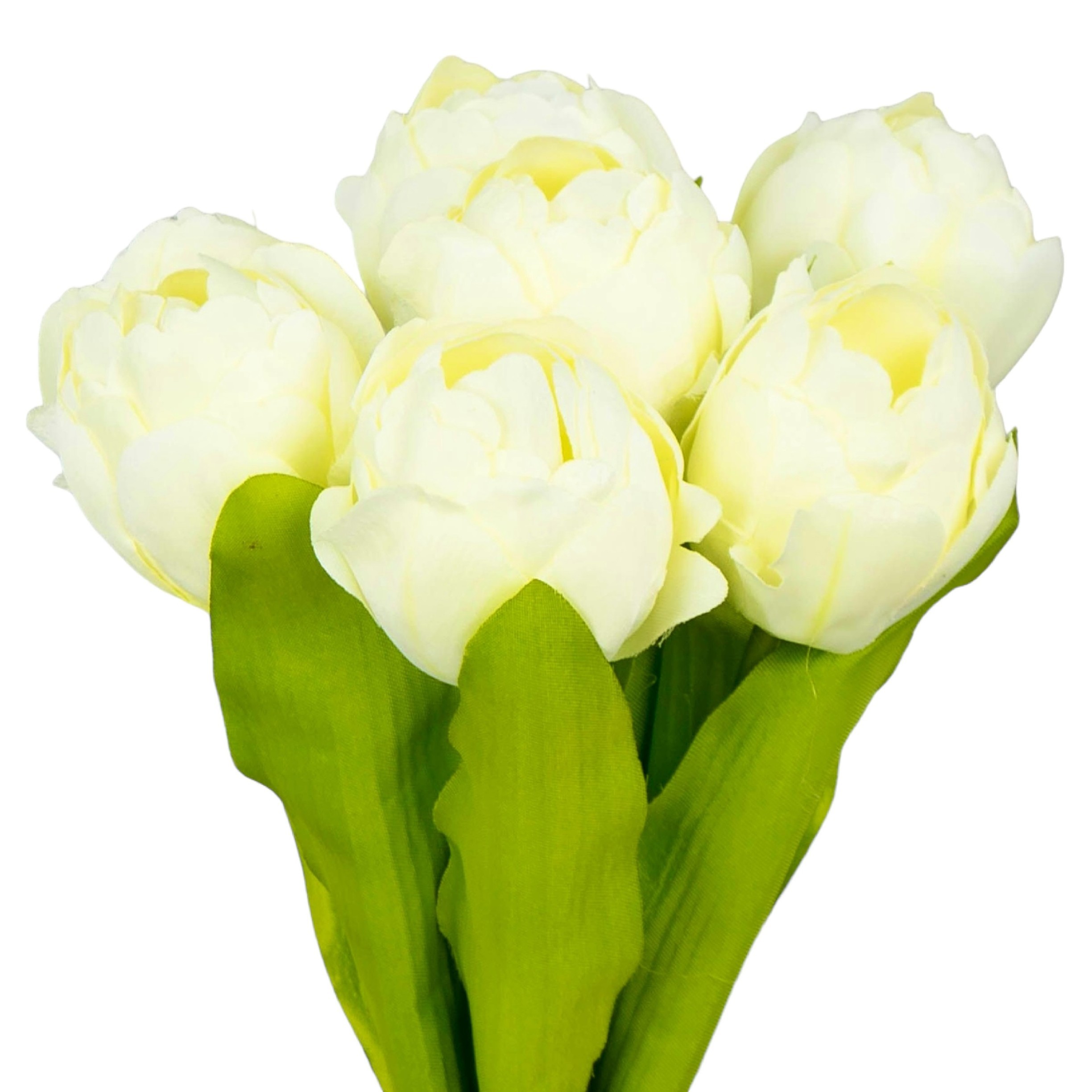 Wysokiej jakości bukiet sztucznych tulipanów, które rozjaśnią i ożywią każdą przestrzeń. Realistyczny wygląd i jasny kremowy kolor kwiatów doda uroku i elegancji w domu, restauracji, sali weselnej oraz wielu innych okazjach i uroczystościach.