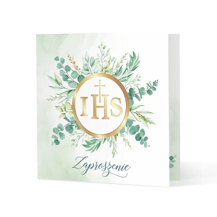 podkreślonej przez złotą obwódkę i napis IHS z krzyżem. Zielone motywy roślinne